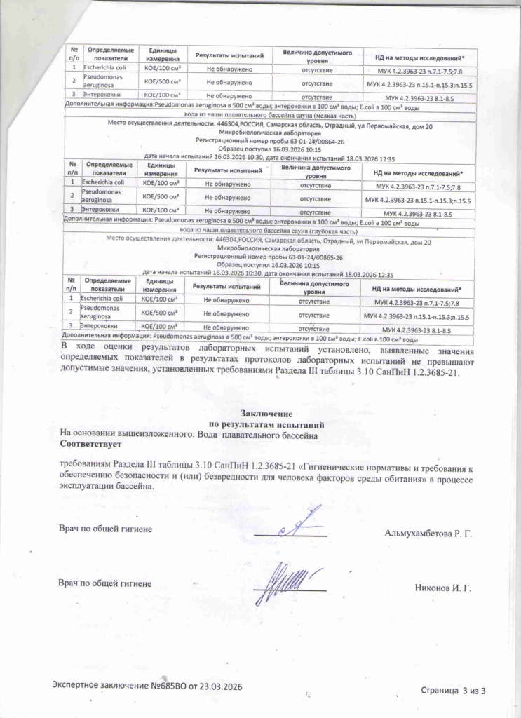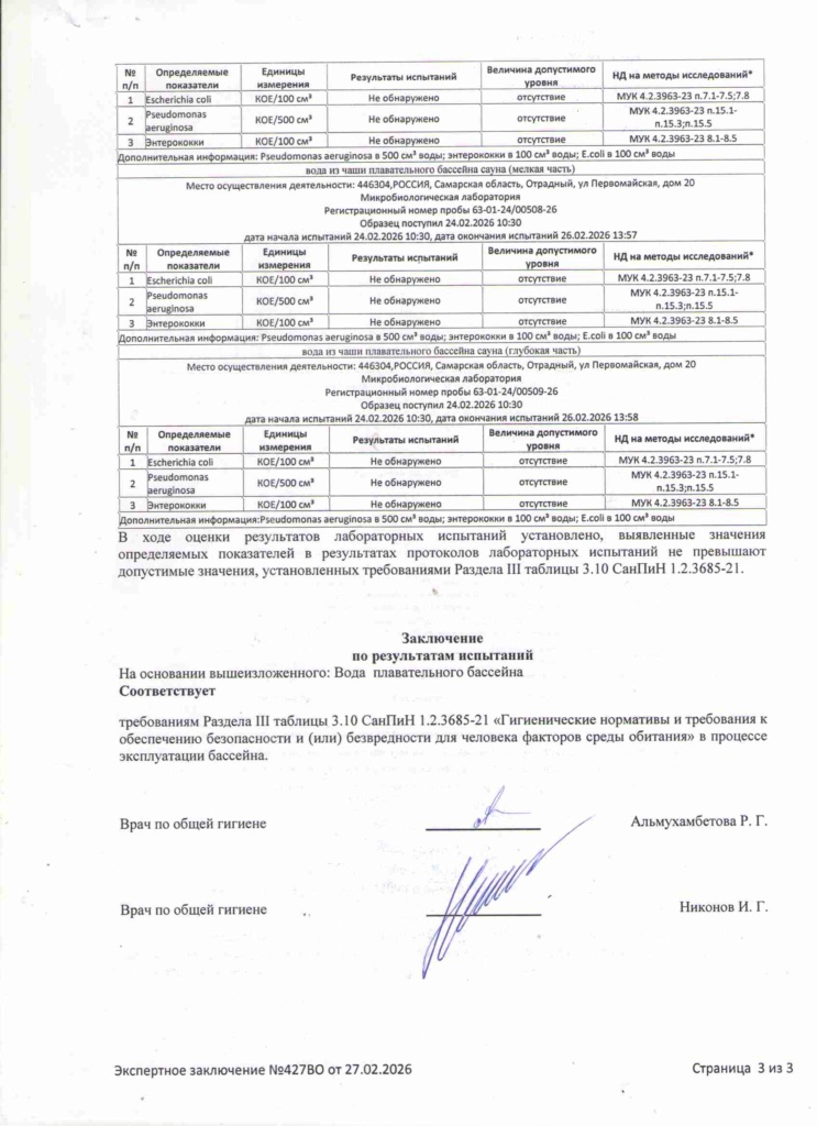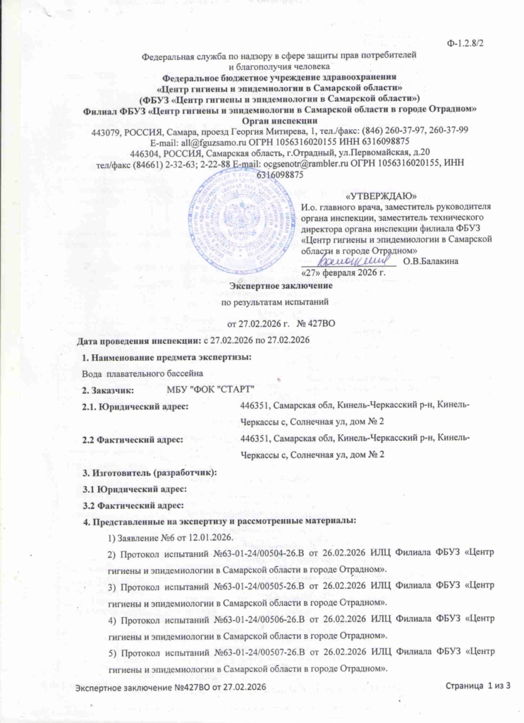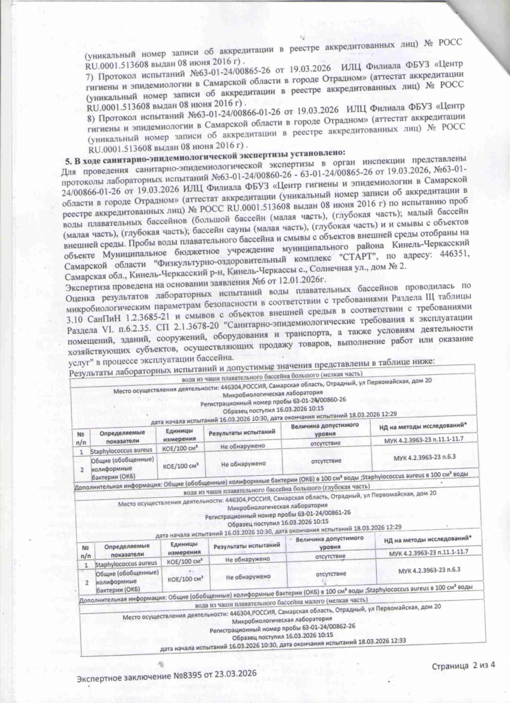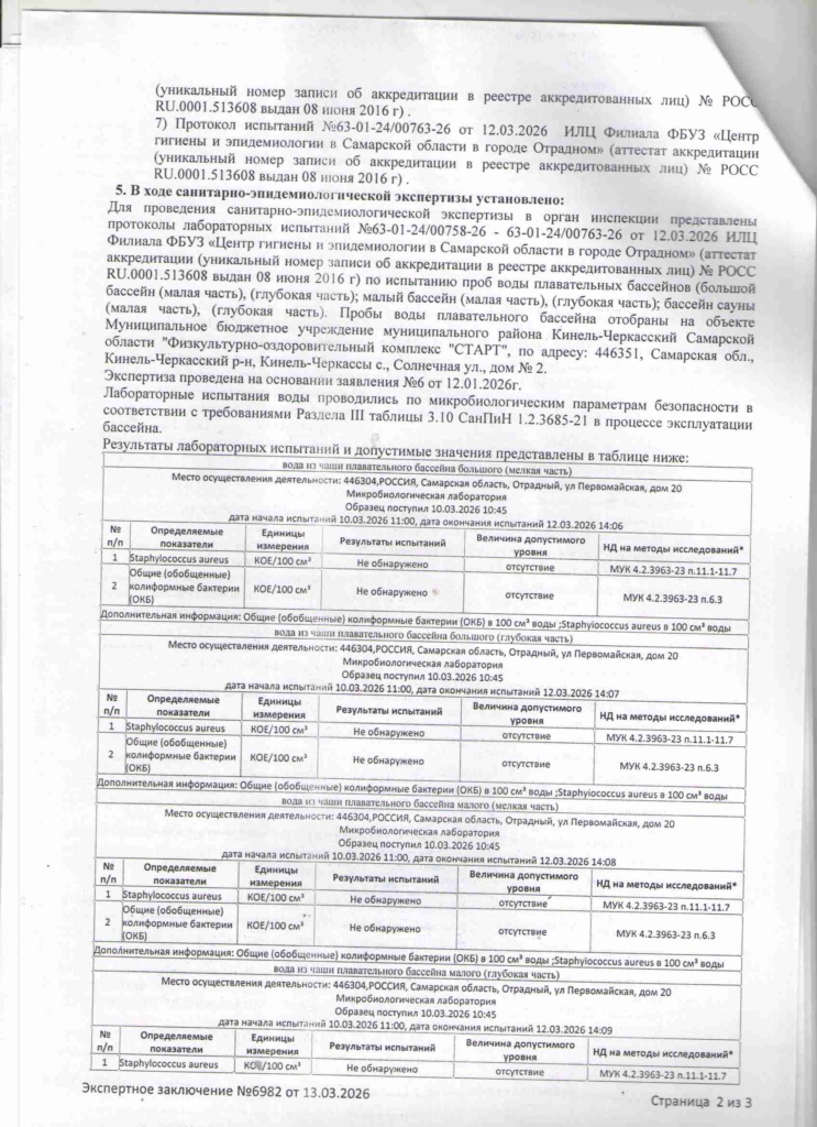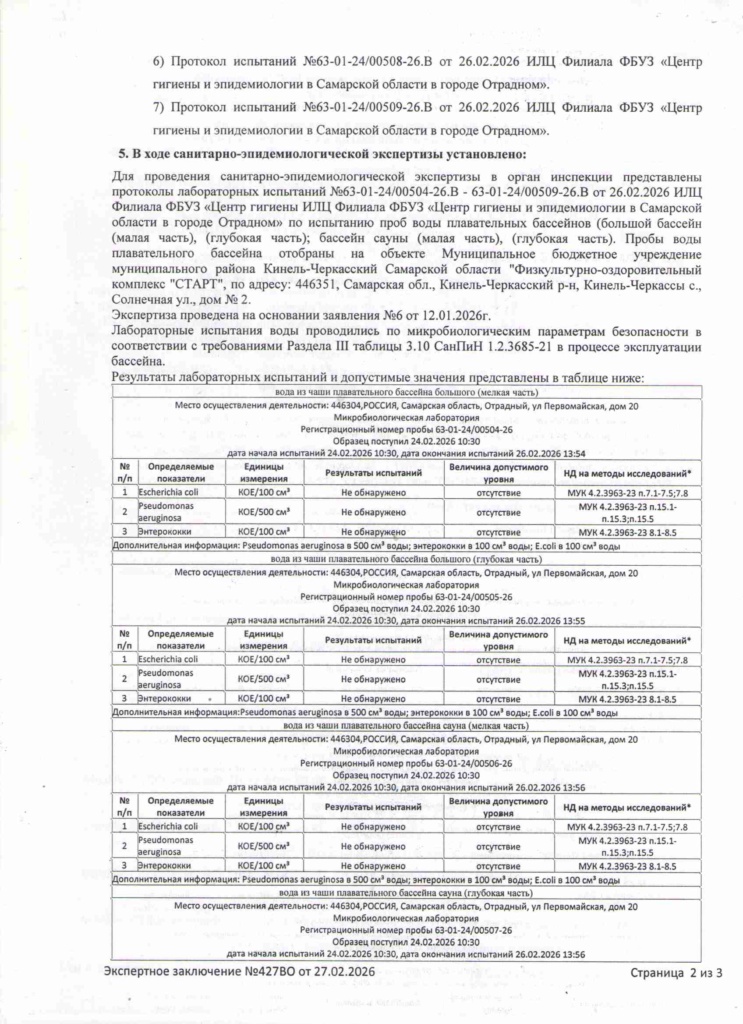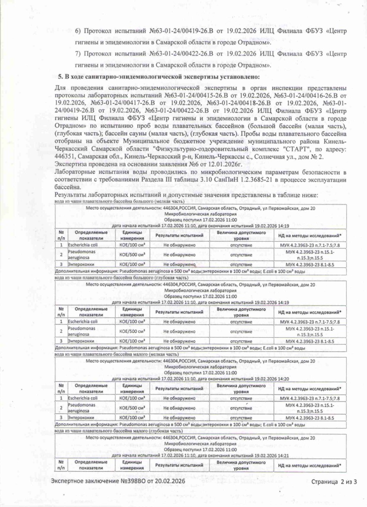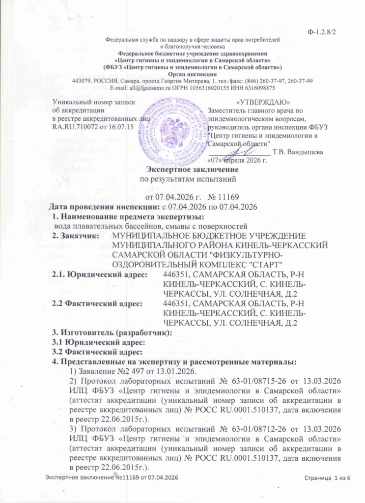 ЭКСПЕРТИЗА СМЫВОВ ВОДЫ ИЮНЬ 2017